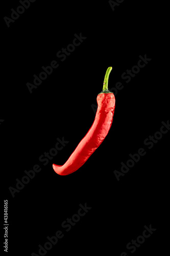 Chilli pepper isolated. Red hot chili paprika or spicy chile cayenne pepper isolated on black background. Ingredient for fresh spice mexican food.