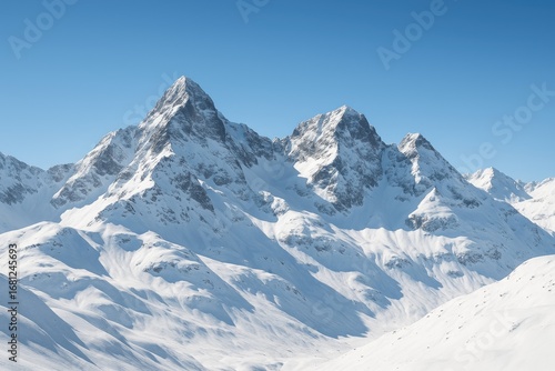 Chilly winter scene with frosty mountain tops and a bright blue sky
