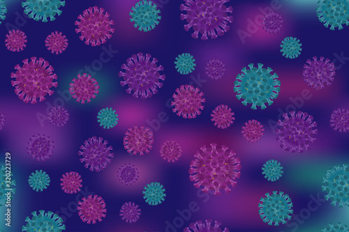 China pathogen respiratory coronavirus. Flu spreading of the world. Floating flu virus and cancer cells. Flat vector illustration EPS10