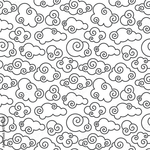 Chinese clouds seamless pattern. Oriental retro design. Thai Japanese and Korean style. Vector illustration