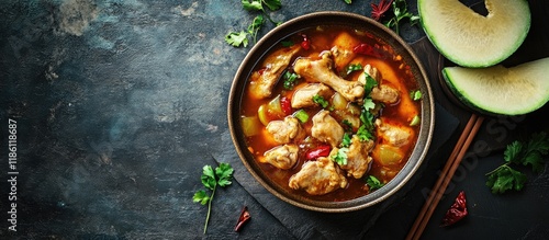 Chinese cuisine featuring chicken wing and winter melon soup. with copy space image. Place for adding text or design