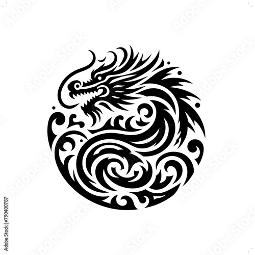 chinese dragon in modern tribal tattoo, abstract line art of people, minimalist contour. Vector