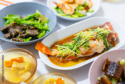 Chinese family dinner with asian cuisine food