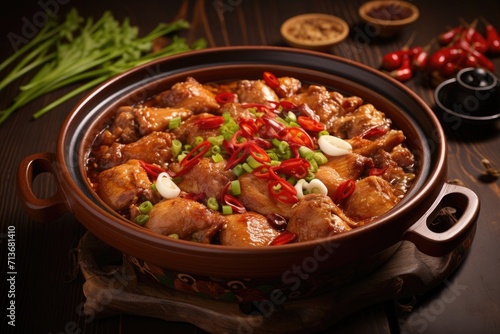 Chinese Kung Pao chicken dish in a traditional bowl.