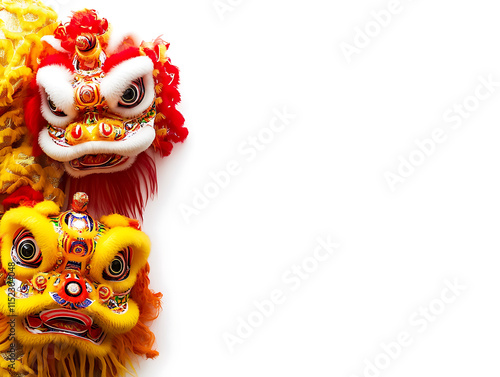 Chinese lion dance performance with vibrant costumes on white wallpaper
