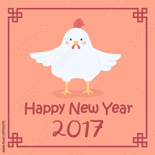 Chinese New Year 2017 Cute Chicken Rooster Red Zodiac Character Vector Illustration Cartoon Greeting Card
