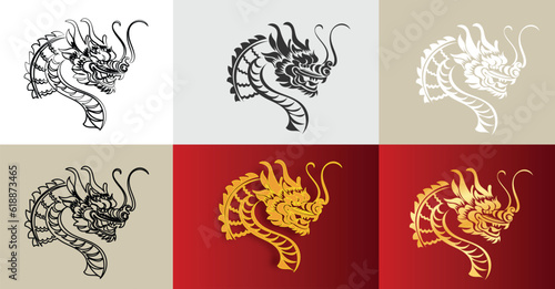 Chinese New Year 2024, the year of the Dragon, red and gold line art characters, simple hand-drawn Asian elements with craft (Chinese translation: Happy Chinese New Year 2024, year of the Dragon)
