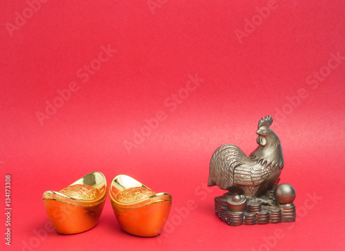 Chinese new year festival decorations, Flat lay chinese new year red paper art and craft paper. Brush drawing wording for Chinese New year red and gold color scheme.