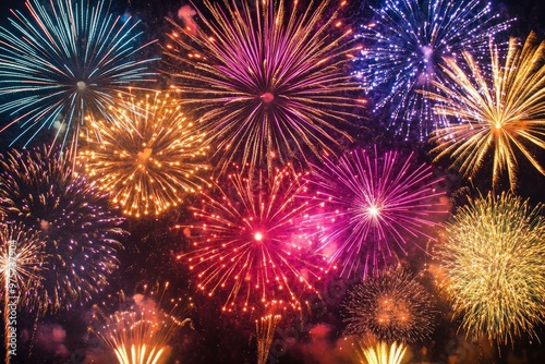 Chinese New Year Fireworks Display: A festive background showcasing colorful fireworks bursting in the night sky, creating an exciting and celebratory atmosphere.