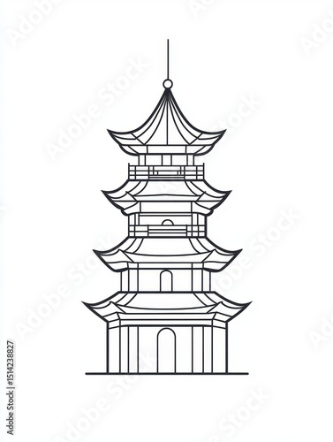 Chinese Pagoda Line Art Asian Architecture Illustration
