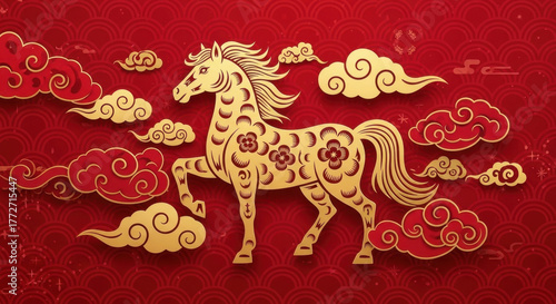 Chinese Red Paper Cuttings in the Year of Horse in 2026