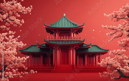 Chinese traditional ancient architecture art illustration