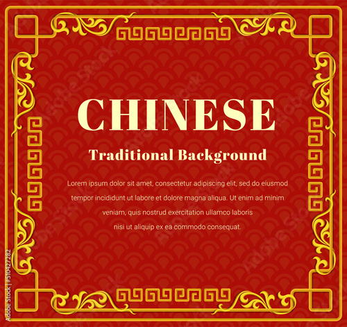 Chinese vintage frame, decorative classic festive red background, vector illustration.