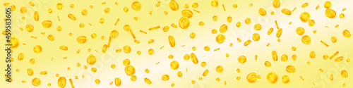 Chinese yuan coins falling. Awesome scattered CNY coins. China money. Resplendent jackpot, wealth or success concept. Vector illustration.