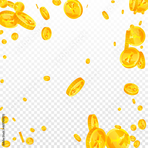 Chinese yuan coins falling. Fabulous scattered CNY coins. China money. Fetching jackpot, wealth or success concept. Vector illustration.