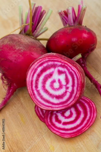 Chioggia striped beet on wood table