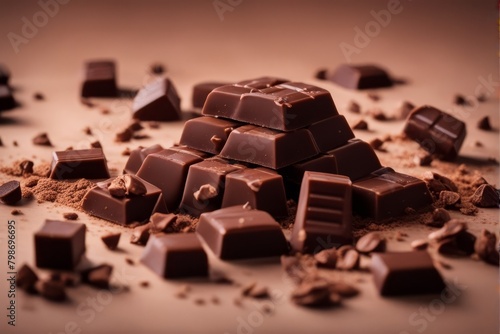 'chocolate bar pieces background sweet food photo concept chunks broken cocoa dessert dark copy space print black milk piece hot drink white isolated candy powder brown bean cinnamon table epicure'