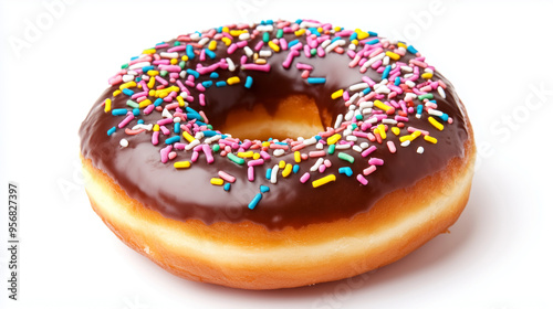 Chocolate bright sweet donut in glaze with sprinkles. Delicious glazed donuts on a white background. generation AI