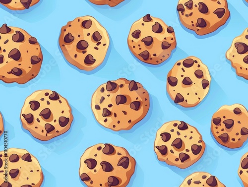 Chocolate chip cookies and oatmeal cookies arranged in a beautiful pattern, showcasing their texture, color, and detail. A delightful combination of sweet treats perfect for food photography.