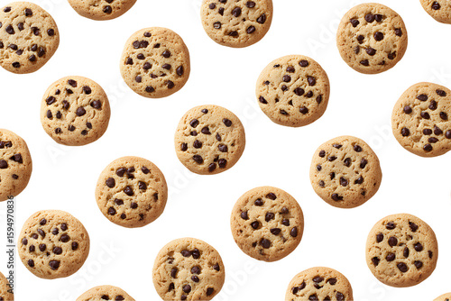 Chocolate Chip Cookies Pattern Isolated on Transparent Background