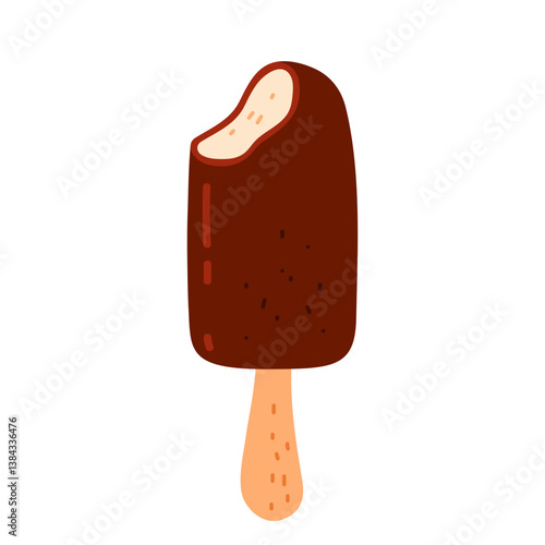 Chocolate coated ice cream bar with a bite taken, perfect for warm days to enjoy outdoors