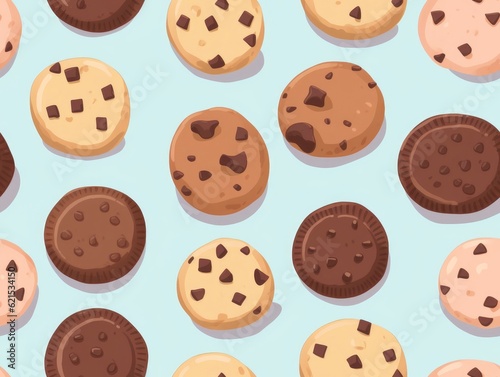 Chocolate Cookies drawn style seamless tiles (generative AI)