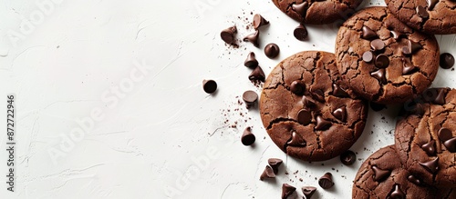 Chocolate cookies on a white background with room for text or elements. copy space available