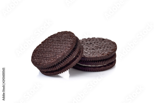 Chocolate cookies with cream filling isolated on white background
