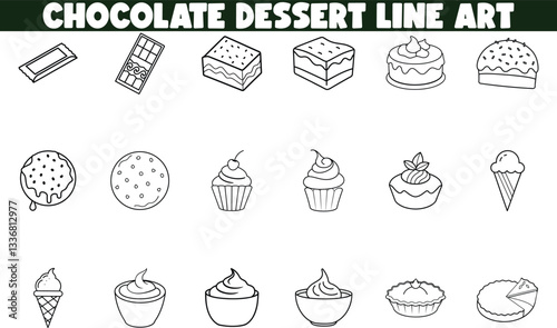 Chocolate Dessert Line Art Cakes, Cookies, and Sweets Collection