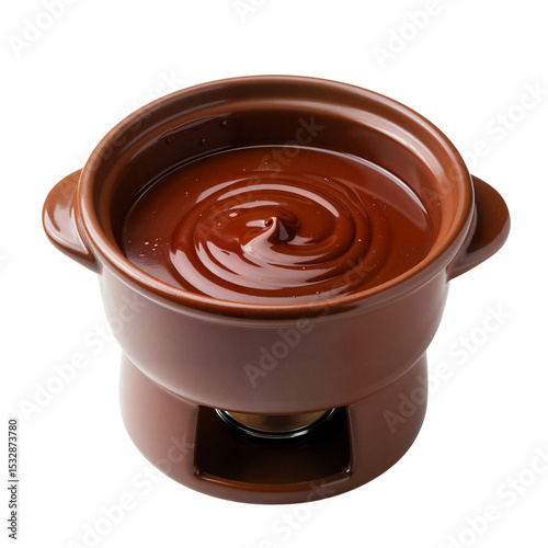 Chocolate fondue in a ceramic pot on a warming stand