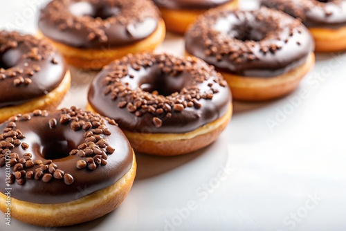 chocolate frosted donuts in white background