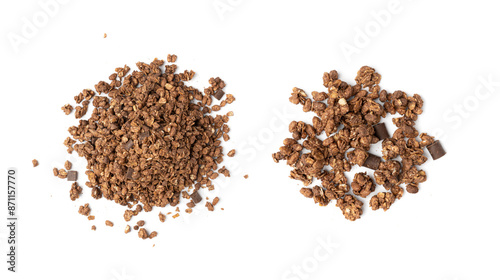 Chocolate Granola Pile Isolated, Cocoa Muesli Breakfast, Crunchy Cereals, Oatmeal Muesli