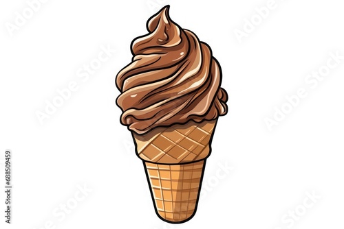 Chocolate ice cream in cone, manga style vector illustration, sticker