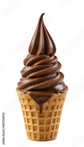 Chocolate Ice Cream in Waffle Cup – Realistic Transparent PNG Dessert Cutout