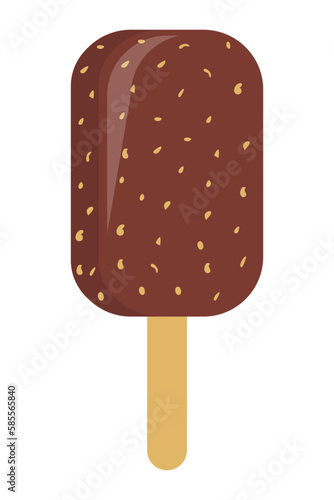 Chocolate ice cream on a stick with nuts. Vector editable design. Summer design for poster, flyer, menu.
