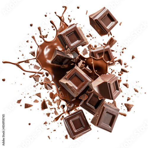 Chocolate pieces splash isolated on transparent background Remove, Clipping Path