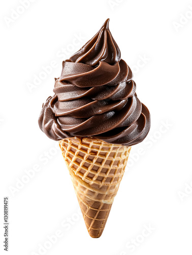 Chocolate Soft Serve Ice Cream in Waffle Cone.