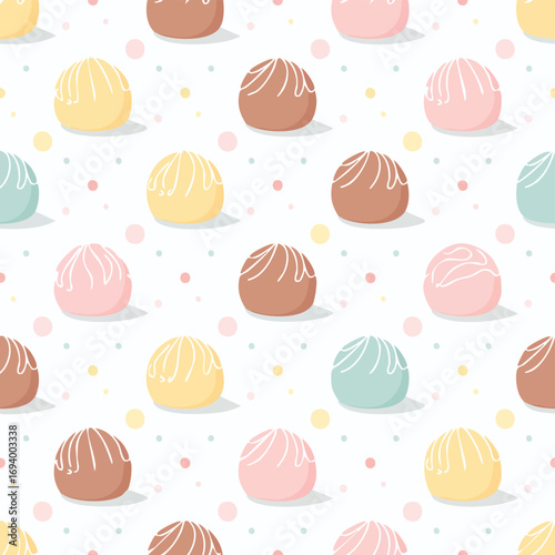Chocolate Truffles gentle pastel-colored vector pattern perfect for seamless backgrounds.