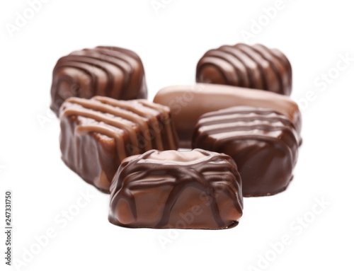 Chocolates, candies isolated on white background
