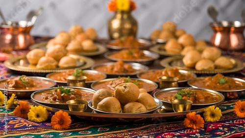 Chole Bhature Celebration Feast, Indian Feast of Chicken Curry and Pakoras