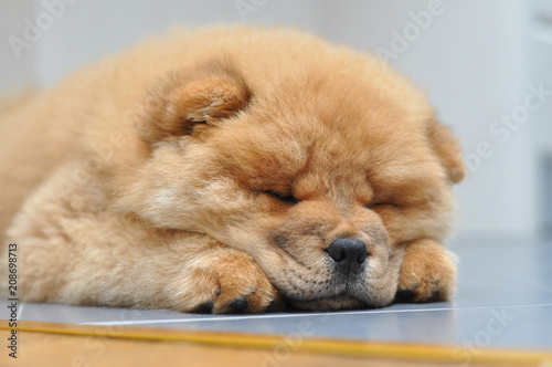 Chow chow puppy in the house. Purebred red dog chow chow