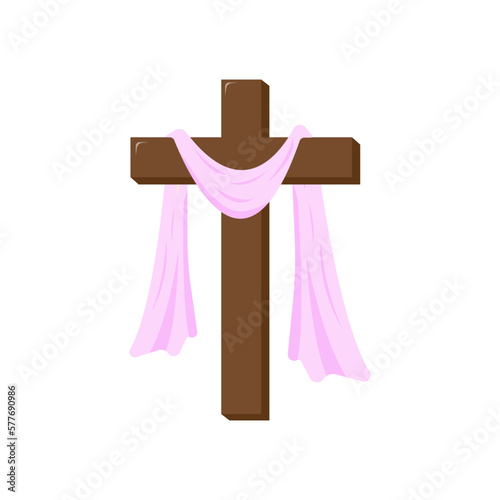 Christian greeting card or banner of the Holy Week before Easter. Cross of Jesus Christ on white background. Vector illustration