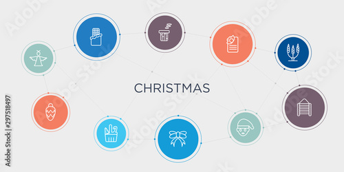 christmas 10 stroke points round design. christmas angel, christmas ball, basket, bow round concept icons..