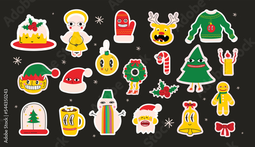 Christmas and Happy New Year. Trendy Style. Simple backgrounds. Set of vector illustrations. Geometric shapes and elements.