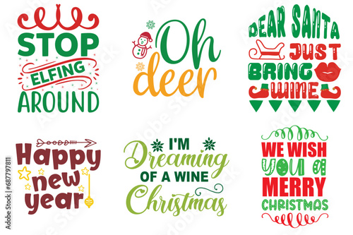 Christmas and Holiday Quotes Collection Christmas Vector Illustration for Sticker, Greeting Card, Packaging