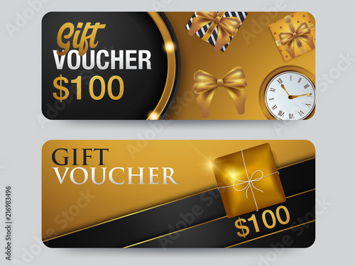 Christmas and New Year Gift Voucher, Discount Coupon Template Collection Set Vector Illustration