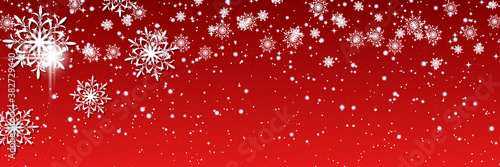 Christmas and New Year vector banner template. Red gradient vector background with stars and glitter effect