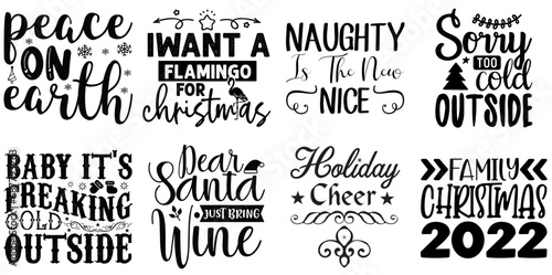 Christmas and Winter Typography Set Christmas Black Vector Illustration for Mug Design, Sticker, Advertisement