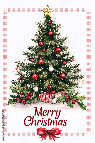 Christmas Backgroud With Christmas Decoration. , Winter holidays greeting card with Merry chirstmas