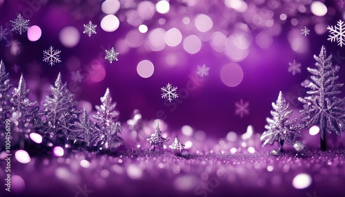 Christmas Background: A rich plum-colored background with sparkling silver snowflakes and light bokeh effects.